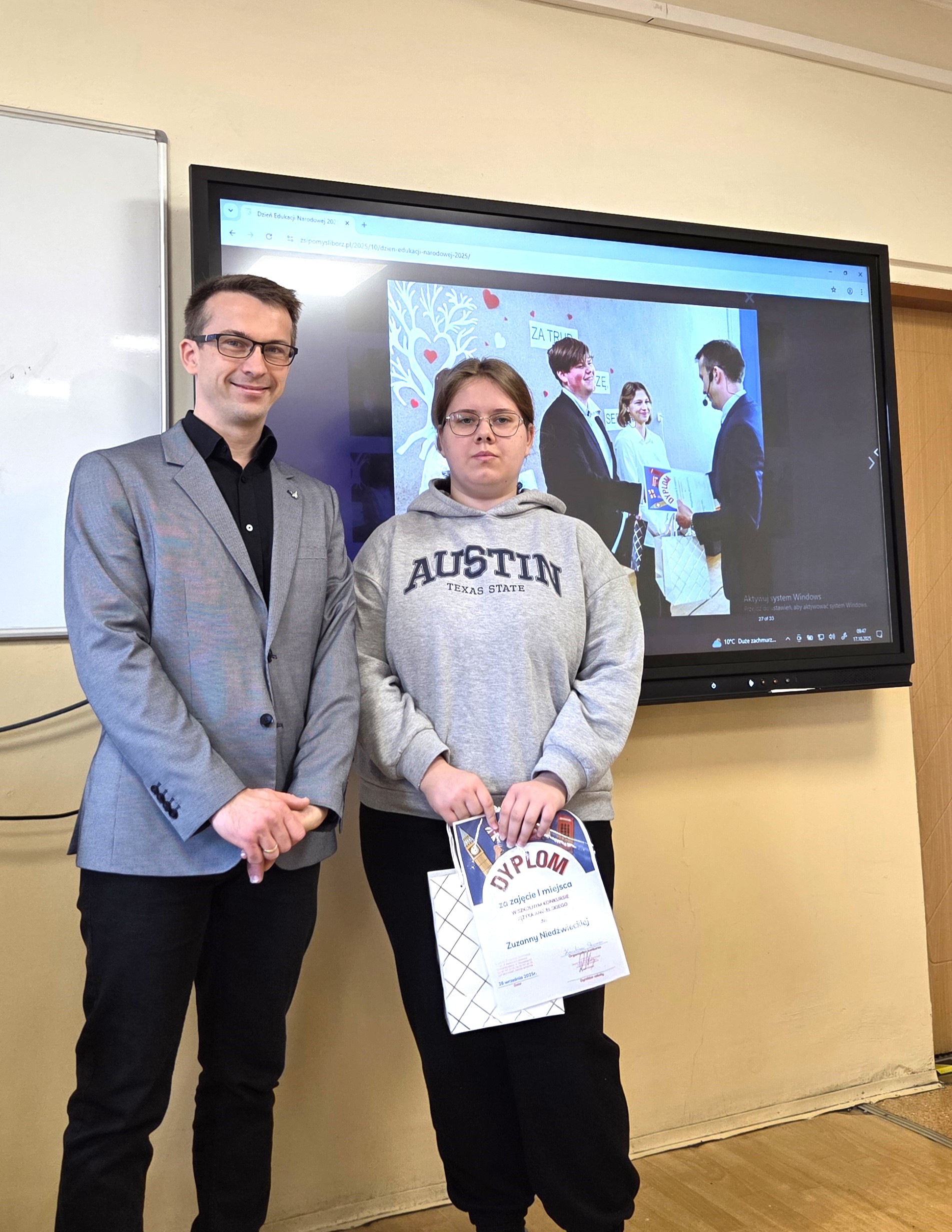 I miejsce ex aequo zdobyły: Zuzanna Niedźwiecka kl. 3HI oraz Maja Kozaczek kl. 1HŻ