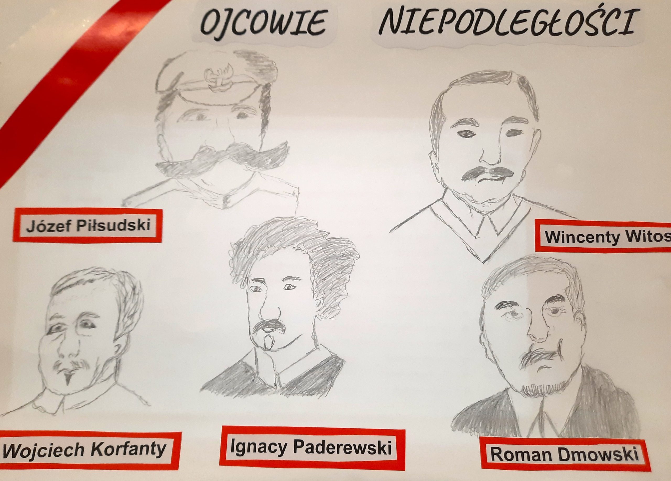 W listopadzie uczniowie naszej szkoły mogli wziąć udział w trzech konkursach o tematyce patriotycznej. Największym zainteresowaniem cieszył się jednak konkurs plastyczny pod hasłem: Ojcowie Niepodległości, w którym kolejne miejsca zajęli: